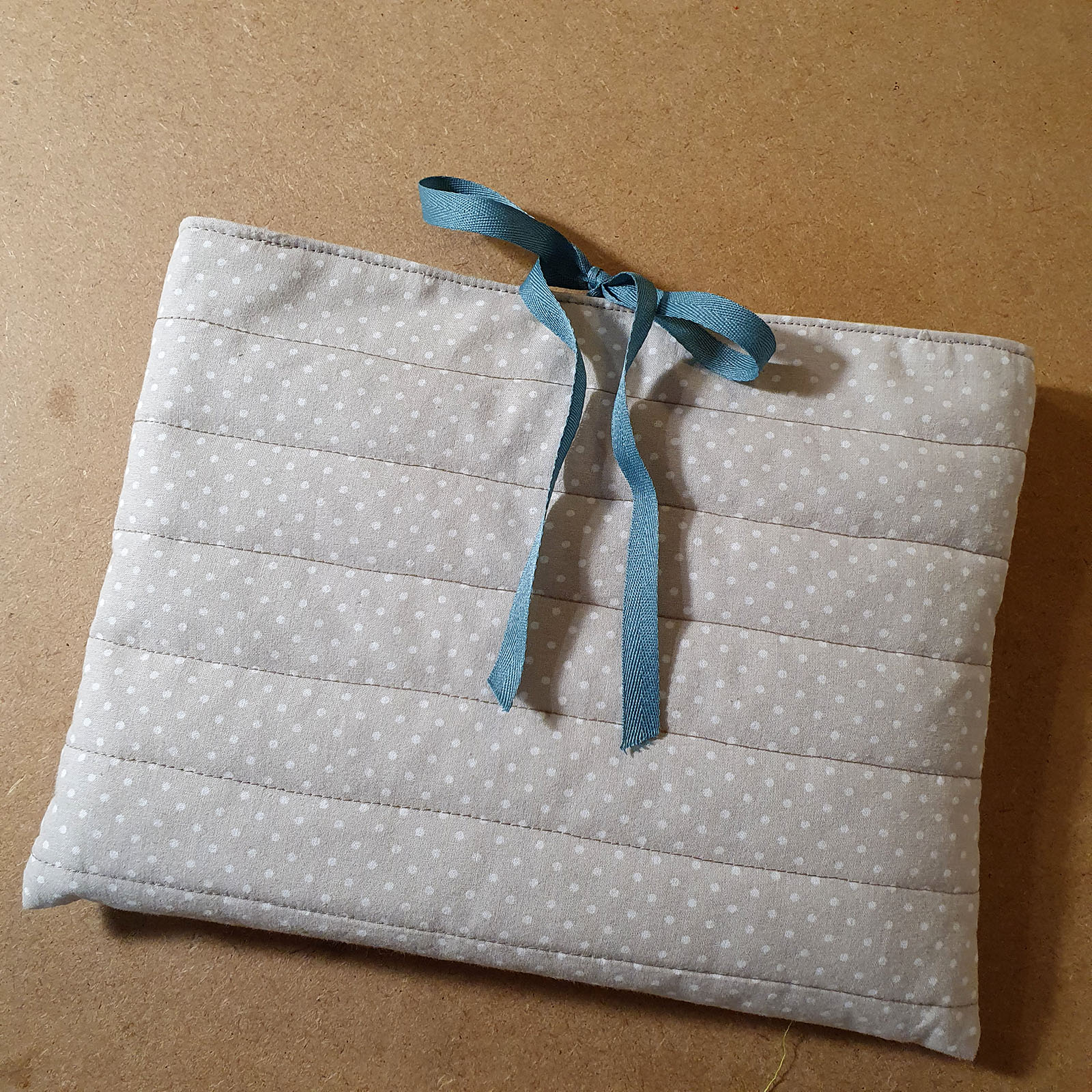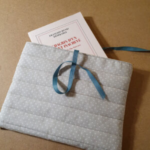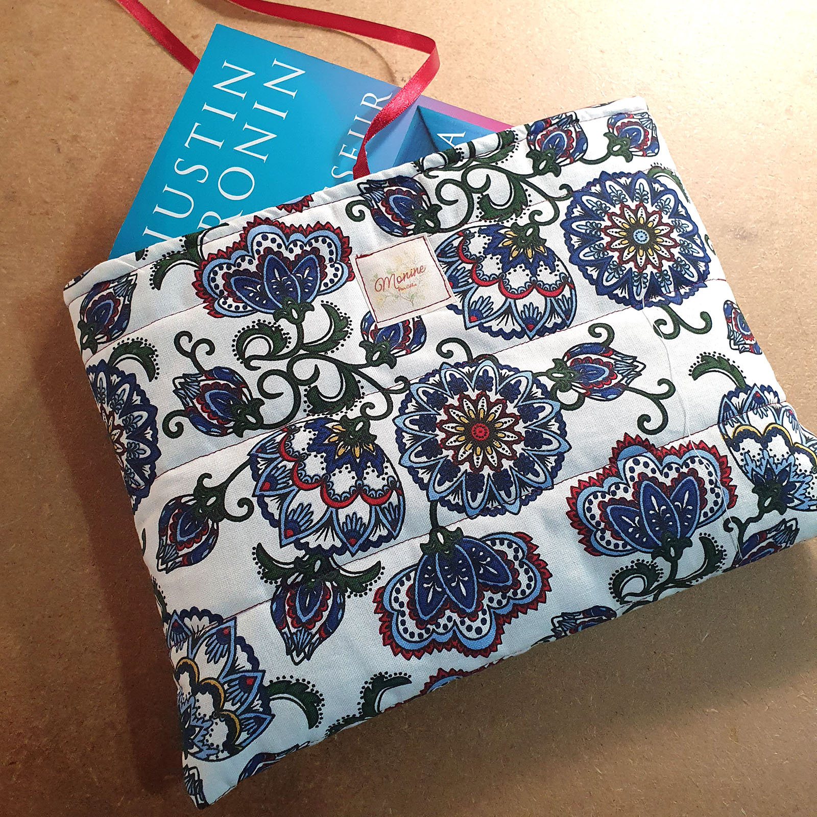 Voilà encore une idée originale, à s’offrir ou à offrir à ses amis lecteurs : une belle pochette pour ranger son précieux livre et le protéger dans le sac ou dans la valise. Pochette matelassée pour plus de protection, fermée avec un joli ruban pour éviter que le livre ne s’échappe !